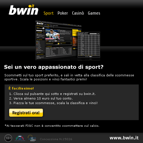 Scommetti sulle tue discipline sportive preferite esclusivamente su bwin e scala le nuove classifiche delle scommesse sportive. Ricordati che con un pò di abilità e molta passione potrai raggiungere la vetta e assicurarti fantastici premi, anche con piccole puntate!